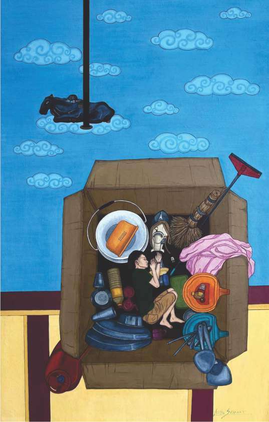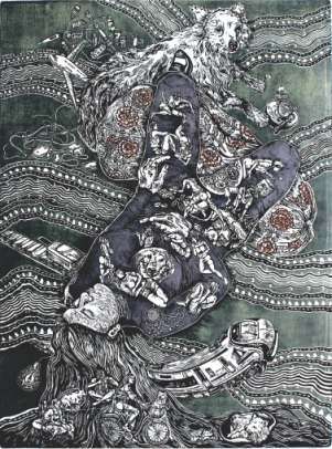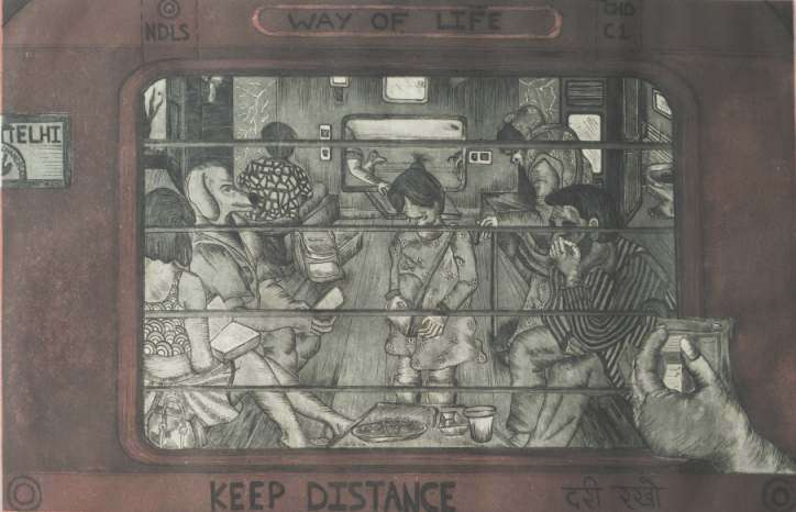 Even though some works evoke the well-known stylistic languages of modernist and post-modernist art of the previous century, it cannot be helped as modernism is still not dead, and post-modernism continues to segue itself with contemporary art. Conceptual, socially-engaging and tech-driven art — even post-internet art — is the most prominent trend in the world of art today, of which we some good examples in this selection. I shy away from taking names of only a few artists in a group comprising multiple great works but cannot help and point out a few examples for the benefit of the readers. Astha Tiwari’s Trapped, for instance, is a comment on the boxed lives of our times, whereas Greeshma C’s Continuum 30 makes a strong statement on the lives of women. Babita Das’ Together Is Strength uses a forceful abstractionist language, while Bharti Kaushik’s Sangharsh deftly uses the metaphor of knitting needles and balls of wool to speak of internal struggles that the owner of those things may endure. Gomathi Sivasubramanian’s The Met is a postmodernist eye on the stillness of a museum alive with art admirers engaging with works of art. Gunjan Dhillon’s endearing woodcut on paper, Mother and Child, is evocative of the woodcuts of the previous century, most notably Chittaprosad. Naina Somani’s woodcut on canvas, Fish Light Dinner, presents a harmonious blend of the technique with the genre of surrealism. The list can go on, and in fact, must go on, because even those who have not been mentioned here have presented works that exude serious thought and dexterous application of that thought.