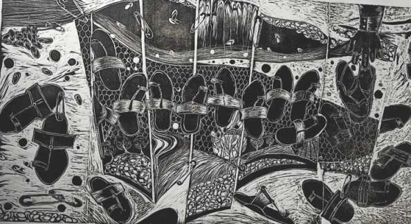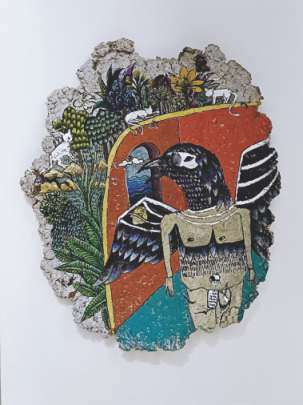 A word on the materiality explored in the exhibition as well… In an age when boundaries have been pushed in terms of what constitutes the medium of art, its reassuring to see artists investing innovation in traditional mediums such as painting on canvas and paper, woodcuts, ceramics, photography, stone and stoneware, terracotta, brass, fiberglass, and more.